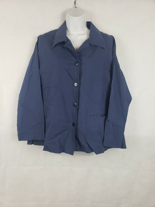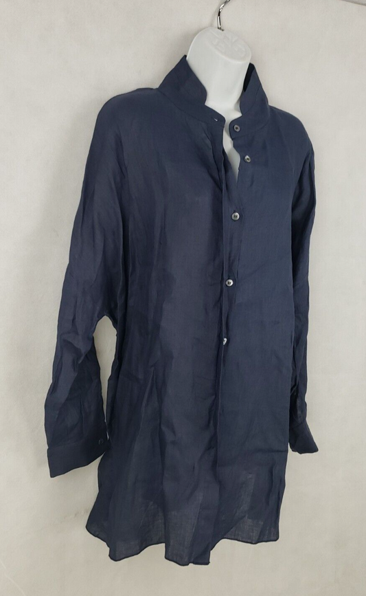 Women's SHI 100% Linen Dark Blue Oversize Button Lagenlook Sheer O/S Shirt Top [New with tags]
