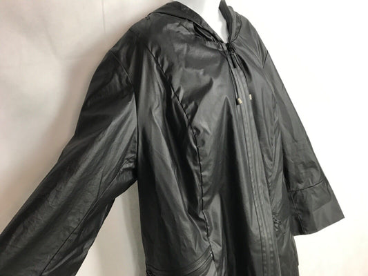 Risona Tomo Women's Rain Coat Sz-XL Black w/ Pockets Cotton Full Length Zip Up [Pre-owned]