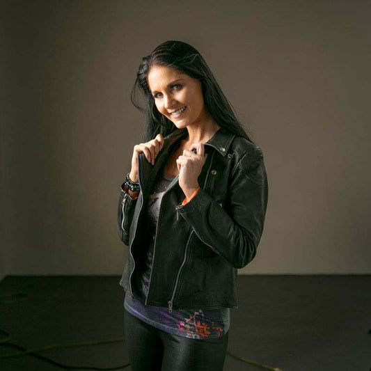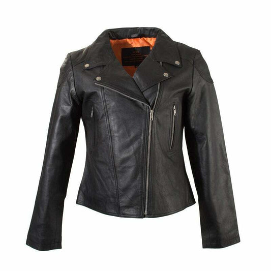 Women's Moto Biker Black Leather Jacket Silver Studs Zippered Wendy [New with tags]