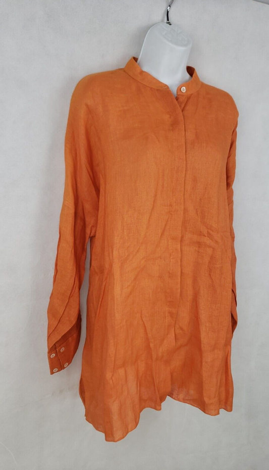 Womens SHI 100% Linen Burnt Orange Oversize Button Lagenlook Sheer O/S Top [New with tags]