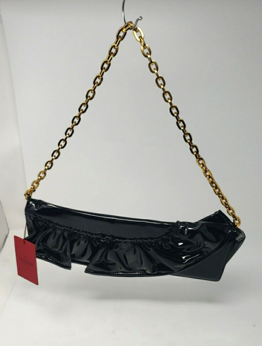 Valentino Garavani Patent Leather Shoulder Bag Purse or Clutch Black Ruffles [Pre-owned]