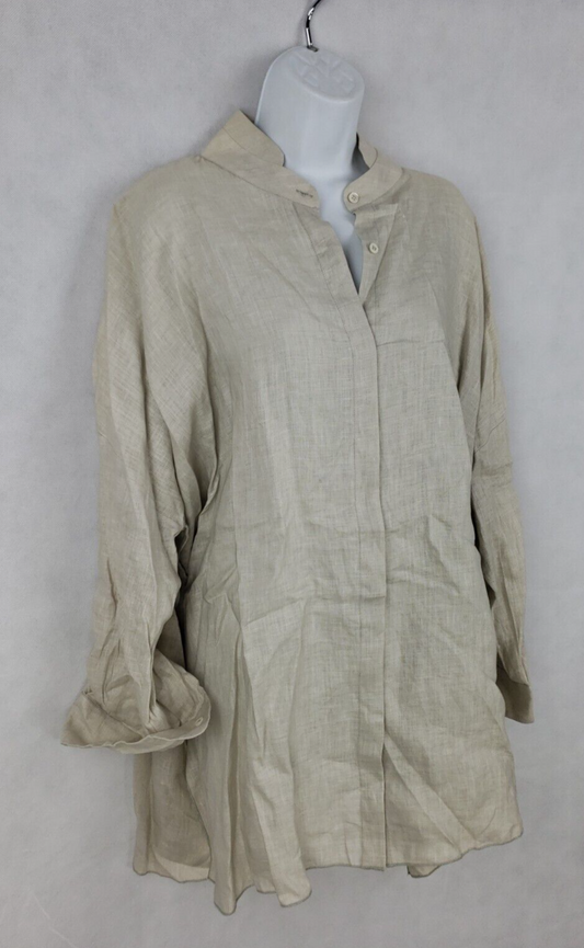 Women's SHI 100% Linen Light Gray Oversize Button Lagenlook Sheer Shirt O/S Top [New with tags]