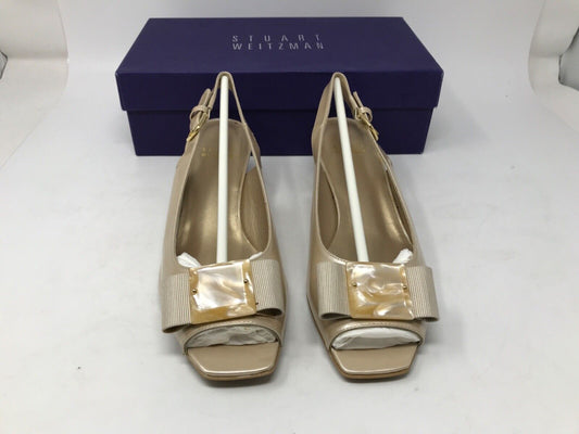 Stuart Weitzman Women's Tan Patent Open Toe Lunchclub 1.5" Pumps Size W8.0 [Pre-owned]