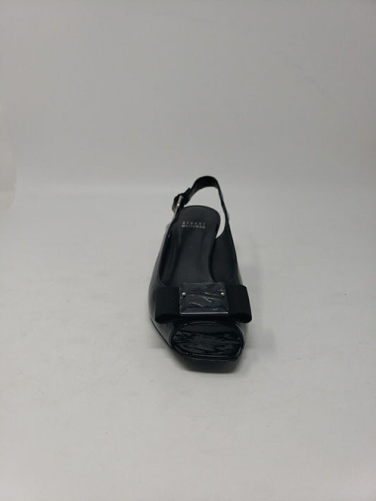 Stuart Weitzman Women's Black Patent Open Toe Strap Closure 1.5" Pumps Size M8.0 [Pre-owned]