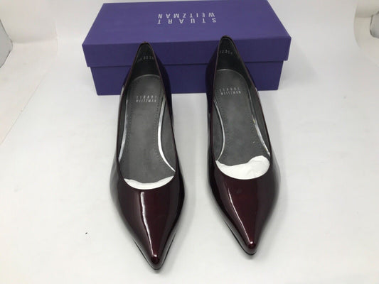 $298 Stuart Weitzman Women's Patent Burgandy Point Toe 1.5" Pumps Size 8M [Pre-owned]