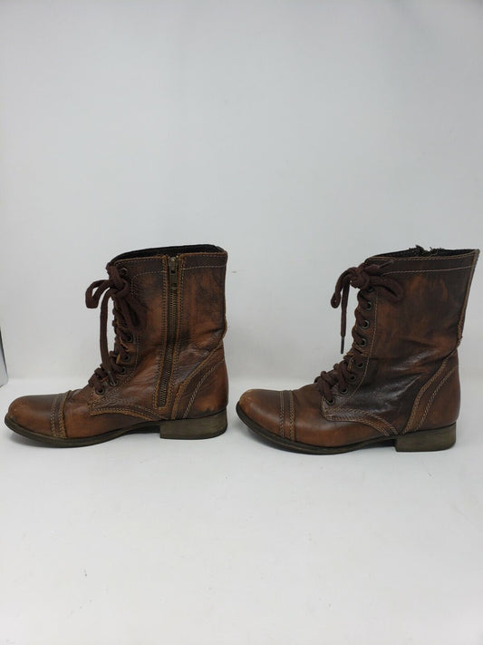 Steve Madden Womens Leather Round Toe Lace & Zip Mid-Calf, Brown Leather, Size 7 [Pre-owned]