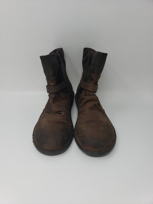Tara M TMB1016 Brown Leather Buckle Side Zip Flat Low Boots Women's US 7.5 [Pre-owned]