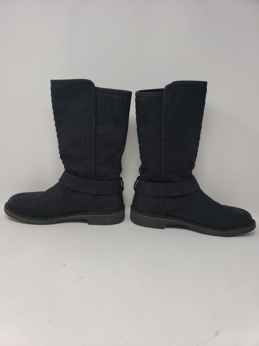 UGG Black Suede Lug Sole Buckle Moto Biker Harness Boot 7.5 Basket Weave 1016923 [Pre-owned]