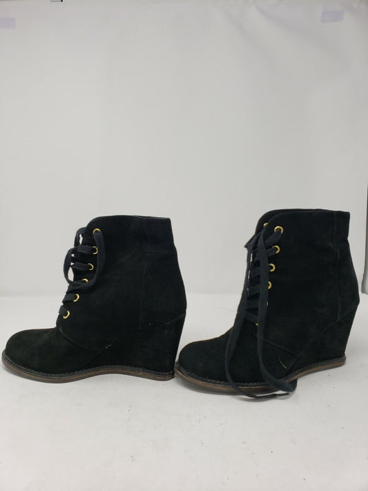 EUC Kate Spade New York Black Suede Wedge Ankle Boots Lace Up Booties Size 9M [Pre-owned]