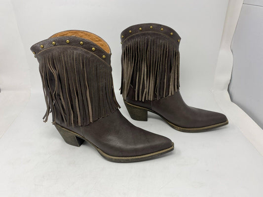 Women's Brown Western Cowgirl Fringe Studded Leather Ankle Boots [New with box]