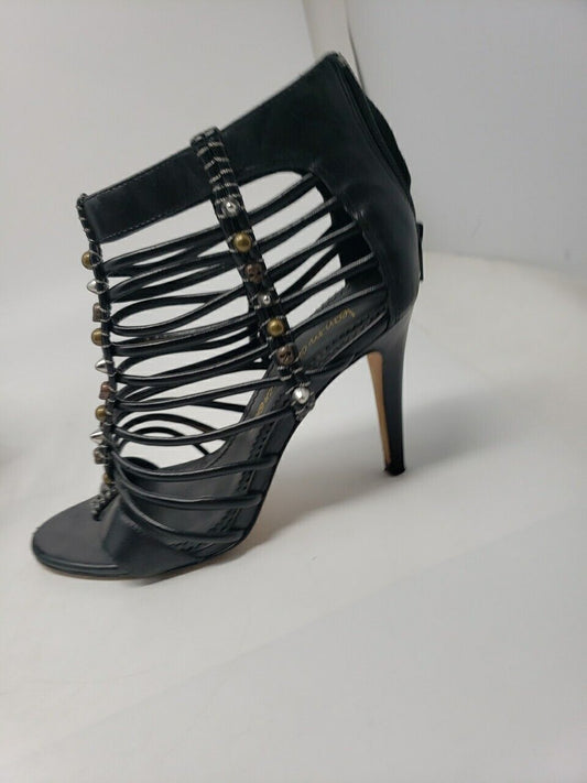 Jean-Michel Cazabat SZ 38/8 Gladiator Heel Black Bronze Leather Gold Rivets Zip [Pre-owned]