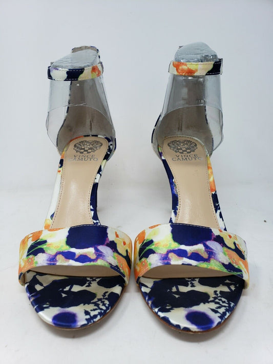 Vince Camuto Women Ankle Strap Heel 9.5 M Blue Orange VC Court Floral 3.5" [Pre-owned]