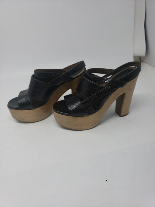 Marni Platform Wooden Heels Brown Black Snake Leather Made in Italy SZ 38 Womens [Pre-owned]