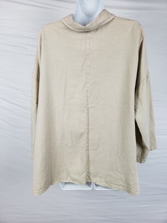 NWT $145 Luukaa Tan Collared Long Sleeve Button Down Asymmetrical Shirt w/Pocket [New with tags]