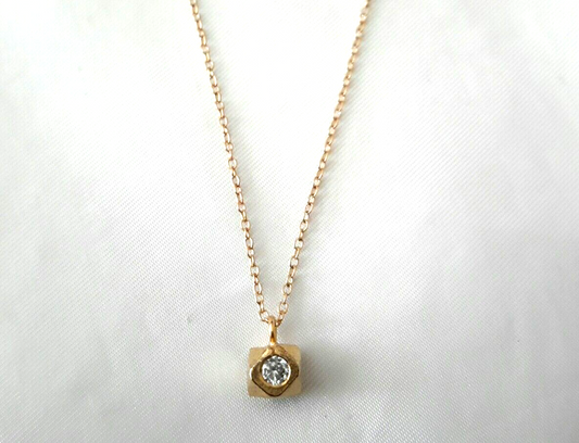 New Zina Kao Faceted Hex Bead CZ Pendant Necklace Vermiel 925 Gold Tone 17" [New with tags]