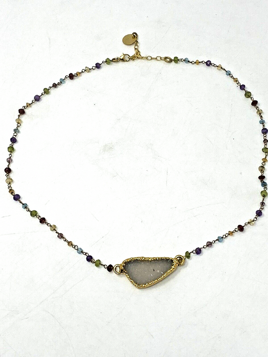 Nina Nguyen Gold Chain Multicolor Sone White Gold Leaf Plated Geode Necklace [Pre-owned]