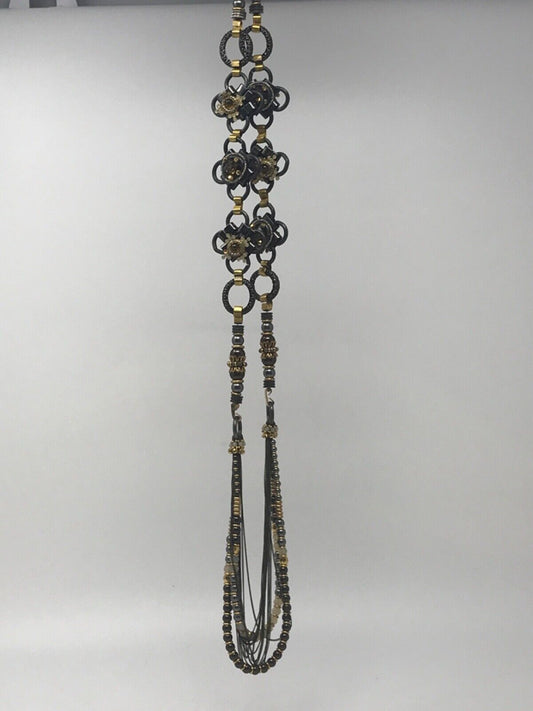 Vintage Miriam Haskell Gold Black Pearl and Crystal Flower Rope Style Necklace [Pre-owned]