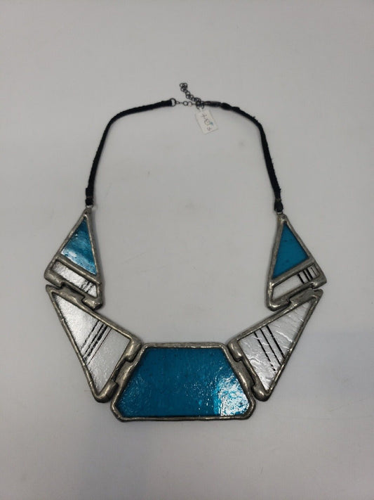 Hand Made Stained Glas Modernist Chunky Necklace Green Yellow 16.5" [New with tags]