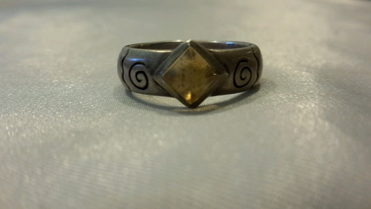 Stamped MWD citrine silver tone gemstone band ring 6 5.64g Boho swirl chevron [Pre-owned]