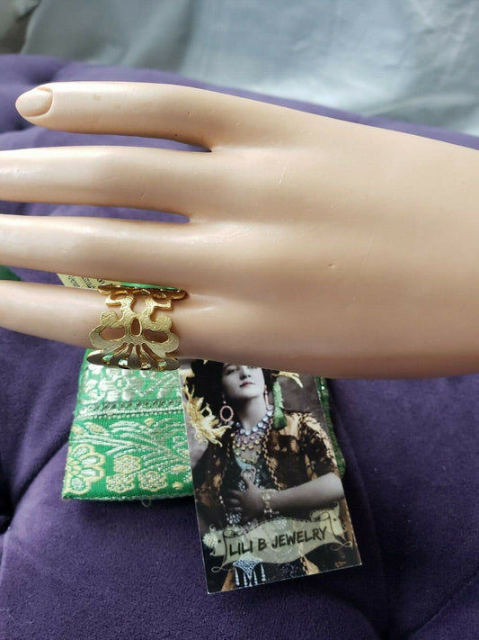 Lili B Jewelry by Lili Brandt 22k Plated Gold Size 11 Adjustable Ring Filligre [New with tags]