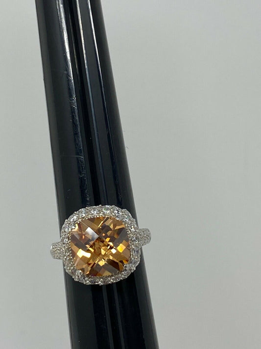 Sterling Silver 12mm Square Peach crystal Statement Ring Stamped 925 Size 8 [Pre-owned]