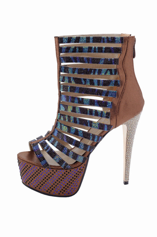 Studded Gladiator rhinestone platform Leopard Heels Club Wear Exotic Dancer Blue [New with tags]