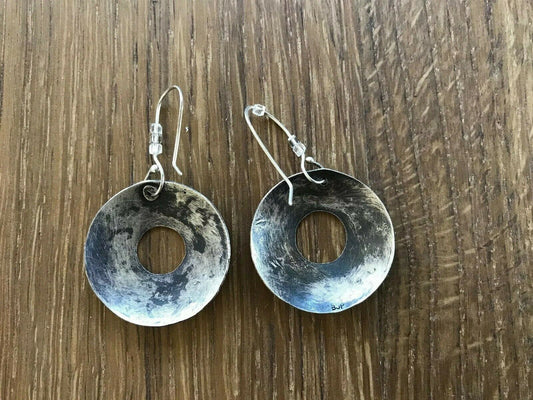 Stamped Sterling Silver signed BJP Round Disc Etched Dangle Earrings 1.25" [New with tags]
