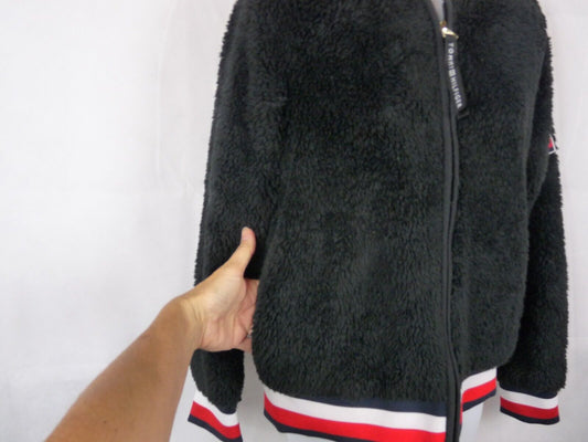 Tommy Hilfiger Navy with Red Stripe Faux Fur Hoodie Full Zipper Jacket Size XS [Pre-owned]