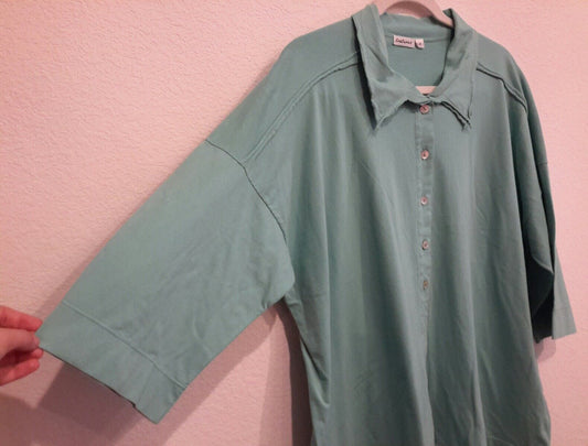 TEXTURES shirt top collar button Size 2 cotton USA Turquoise blue green EUC [Pre-owned]