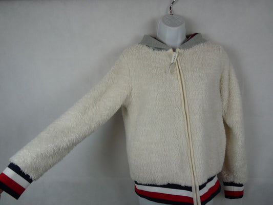 Tommy Hilfiger White Fur with Red/Blue Stripe Hoodie Full Zipper Jacket Size S/P [Pre-owned]