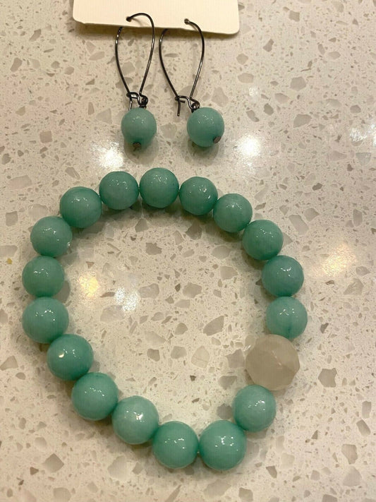 Blue Crystal Stone 1 7/8" Dangle Earrings Boho Bohemian Bracelet Set by Harlow [New without tags]
