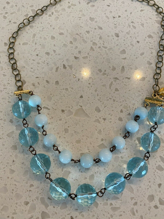 Blue Crystal Stone Beads Boho Bohemian 16" Double strand Neckace by Harlow [New without tags]
