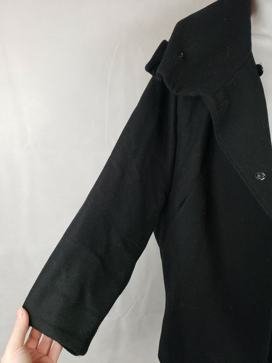 Betsey Johnson Black Wool Blend Peacoat Collared Button Down Lined Size 2 [Pre-owned]
