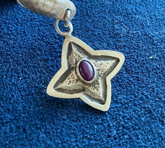 Bohemian Silver Signed Pin Brooch Swirled Snake Tail 4 point Flower Purple Stone [Pre-owned]