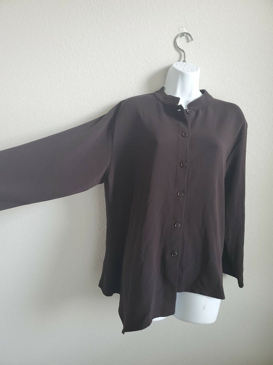 Blanque Women's Brown 3/4 Button up Shirt Size 1 Rayon Blend made in USA [Pre-owned]