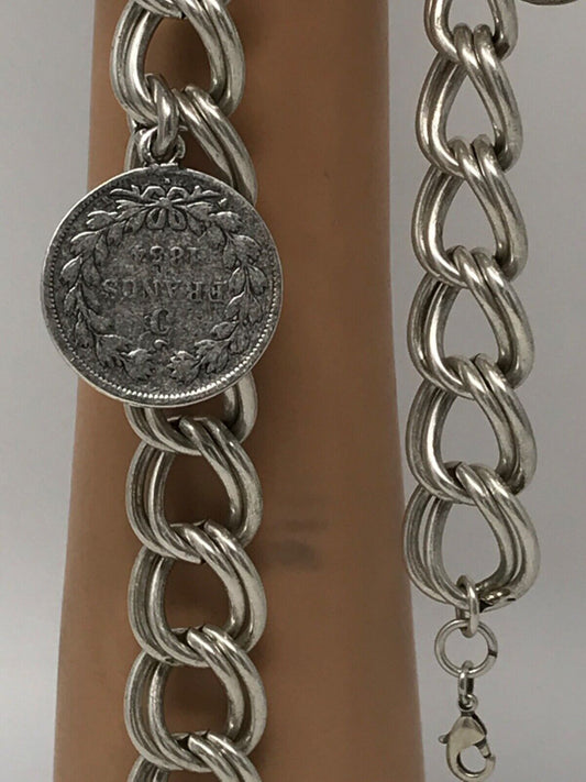 Avant Garde Vintage Pewter Silver Chunky 1834 Three Coin Chain Necklace [Pre-owned]