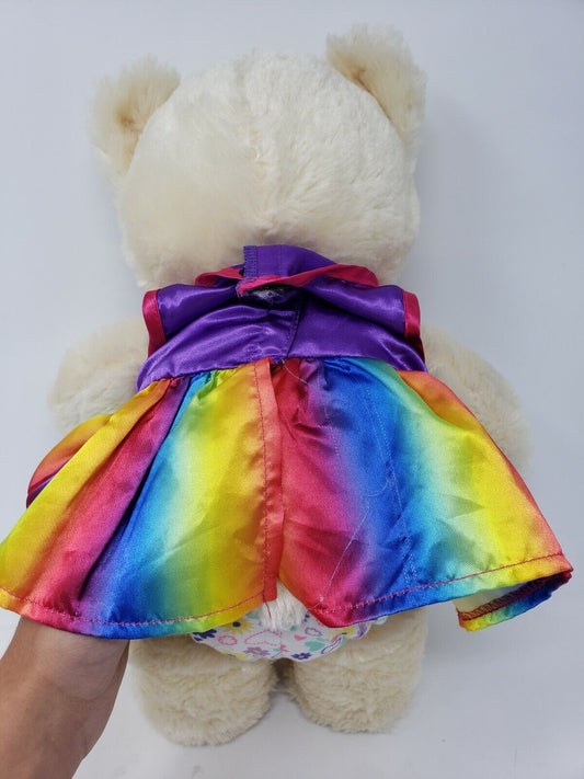 Build A Bear Vanilla 15" Teddy with Sequin Purple Rainbow Dress Floral panties [Used]
