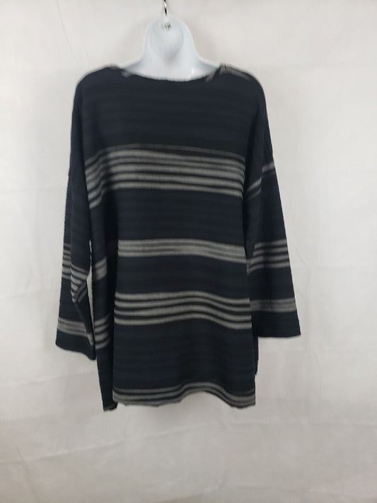 Blanque Womens Asymmetrical Jacquard Lagenlook Black Size 2 Pullover 3/4 Sleeve [Pre-owned]