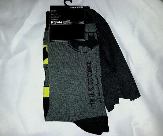 Bio world DC comics batman Mens L one pair grey gray yellow black crew socks [New with tags]