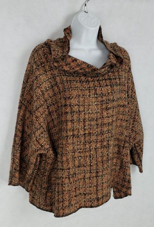 Harriet's SF Wool Pullover Lagenlook Cowl Neck Sweater Sz XL Brown Plaid Short [Pre-owned]