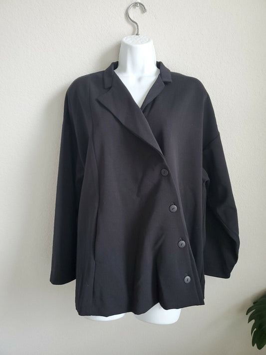 EUC Spirithouse Diagonal Coat Size S/M Black Button Polyester Blend One Pocket [Pre-owned]