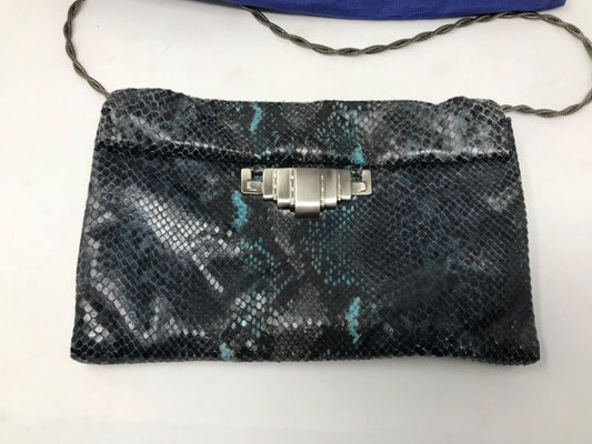 Stuart Weitzman Black/teal Snakeskin Leather Magnetic Handbag 10.5" x 7" x 2" [Pre-owned]