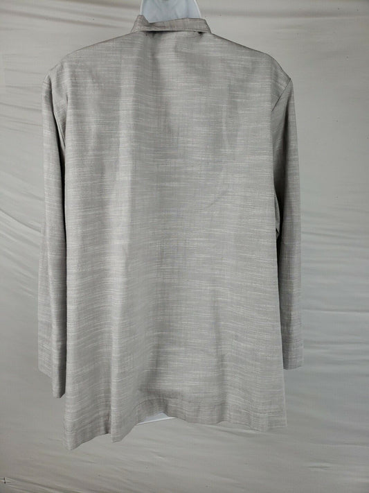 Women's SHI 100% Linen Light Gray Oversize Button Lagenlook Sheer Shirt O/S Top [New with tags]
