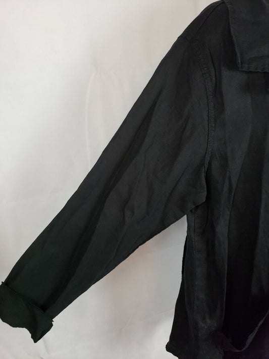 NWT Cynthia Ashby Black Women’s Hanky Hem Jacket Long 100% Linen Shirt Button M [New with tags]