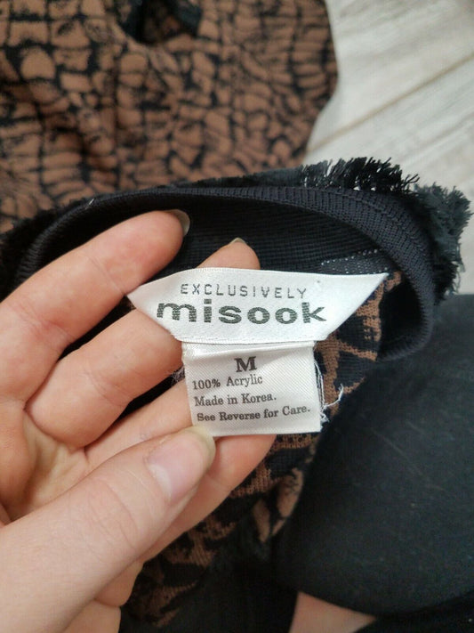 Exclusively Misook coat/jacket Black Brown M Brick design Velvet Trim Pockets [Pre-owned]